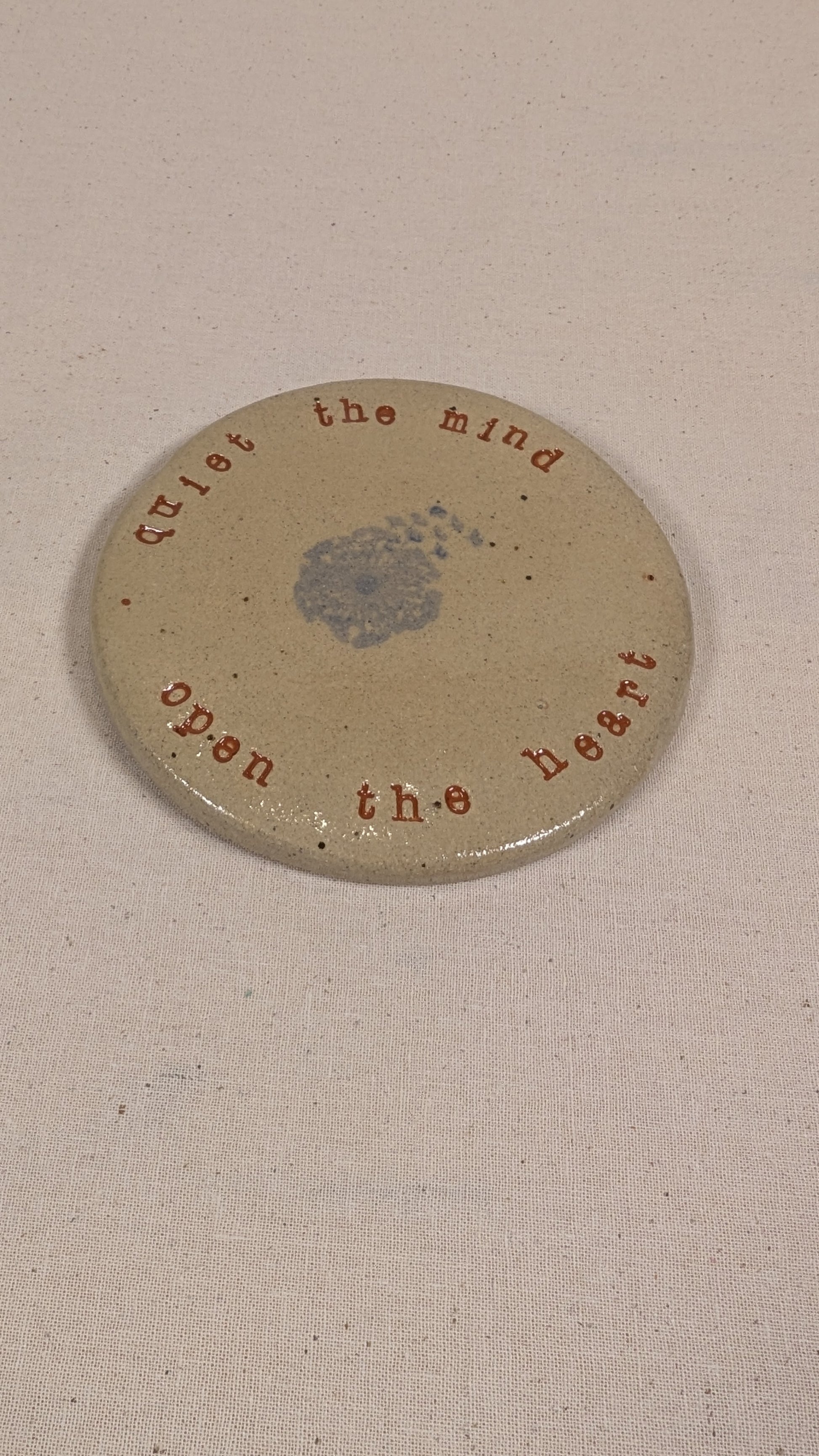 Each coaster has the following wording 'quiet the mind . open the heart' which is inspired by my love for the words spoken by Ram Dass, specifically the Jon Hopkins with Ram Dass East Forest - Sit Around the Fire video which can be found on YouTube.