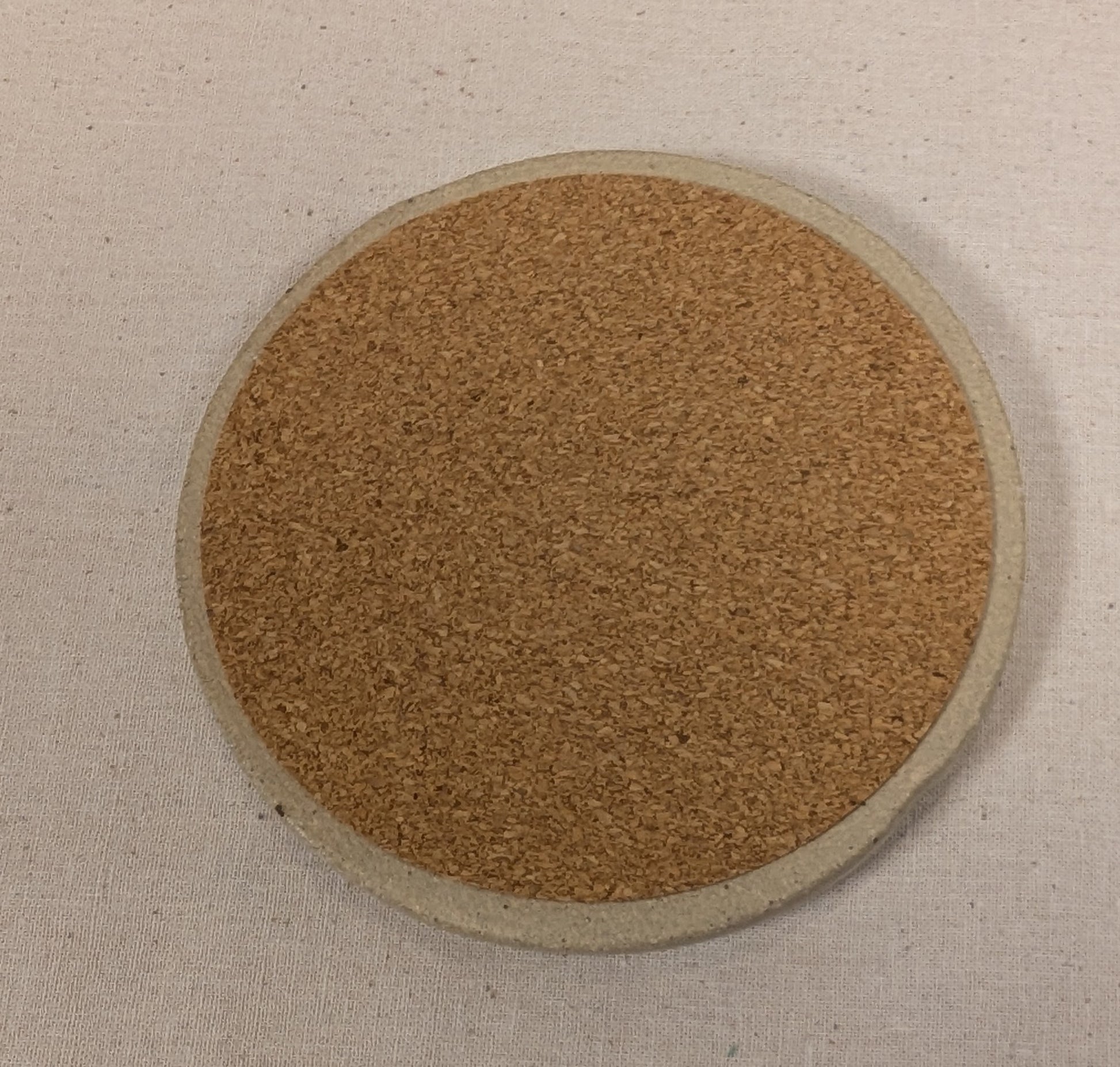 A handmade unique stoneware ceramic coaster made from speckled stoneware clay and glazed in clear glaze.